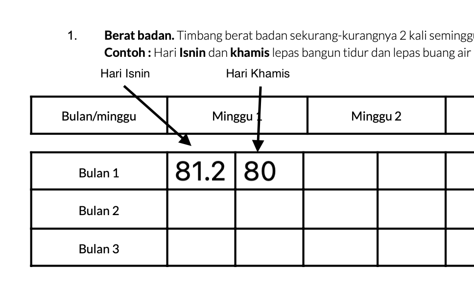 2. Timbang berat badan (sekurang-kurangnya 2 kali seminggu).